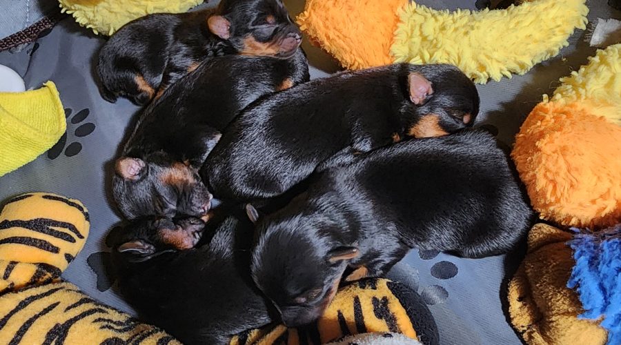 Our second litter has arrived! Born August 18th, 2025, Winchester’s five Yorkshire Terrier girls are healthy, playful, and ready to find their forever families.